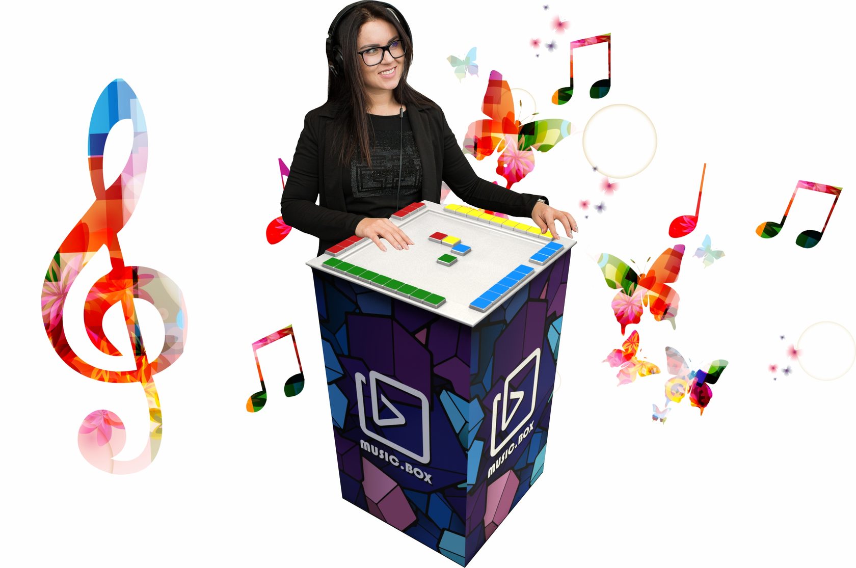 Брендированные в стиль мероприятия музыкальные кубики и тумба навсегда свяжут впечатления участников от активности только с Вашим мероприятием.